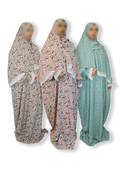 Introducing our beautifully handmade prayer abaya. Each abaya is crafted with care, made by me personally, ensuring the highest attention to detail. I carefully select fabrics from trusted, premium suppliers to provide you with the finest quality. Designed for comfort and modesty, this abaya is perfect for deepening your connection during salah, while keeping you at ease.