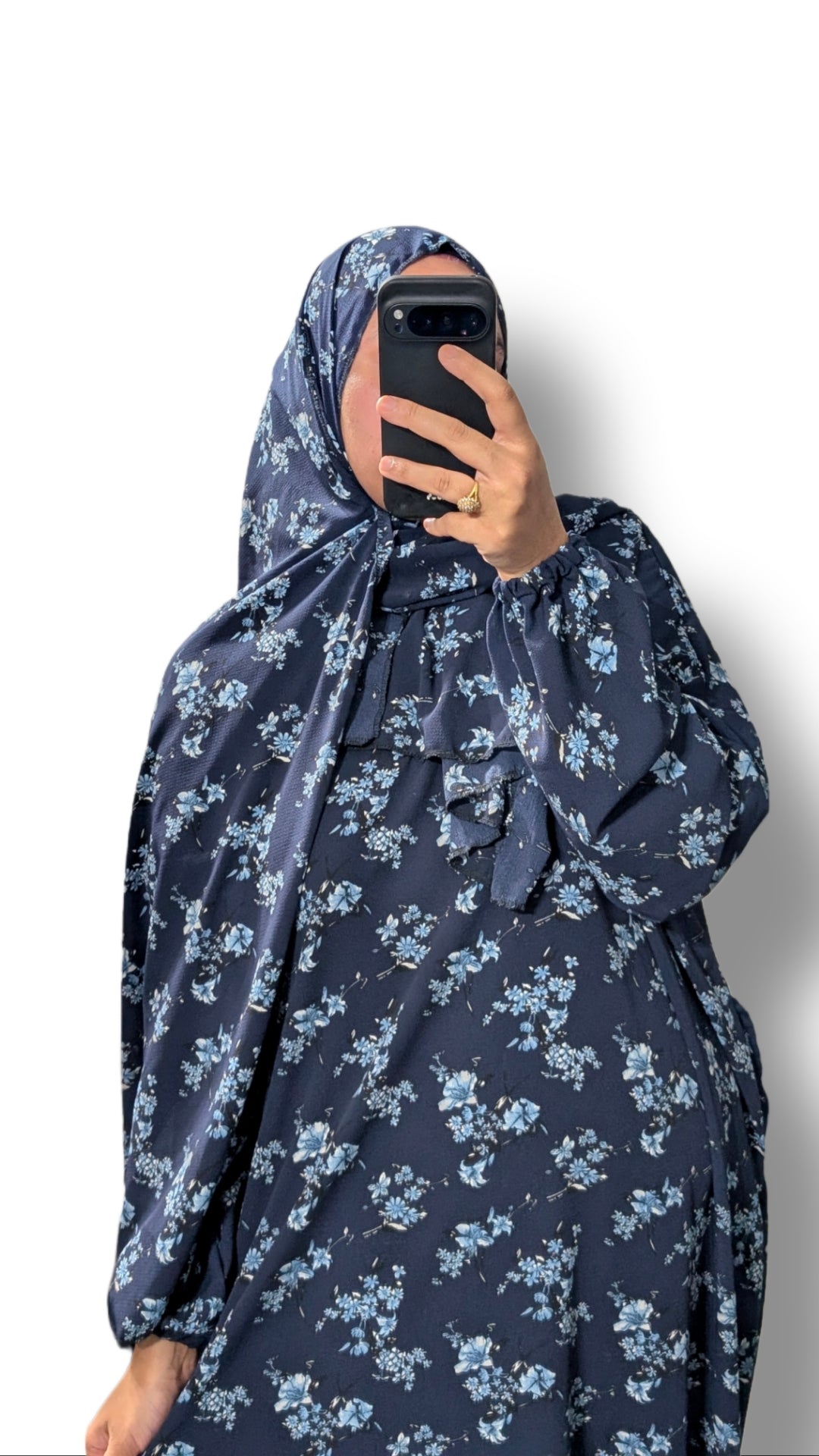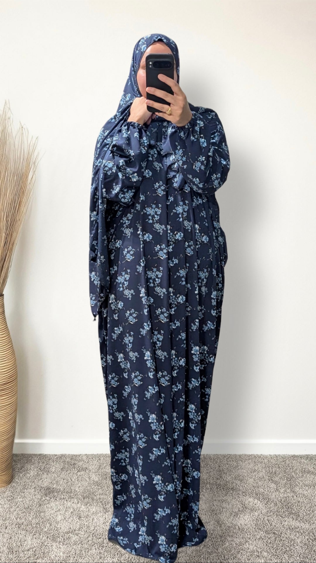 Modest Prayer Abaya With Hijab | Steel Blue Floral